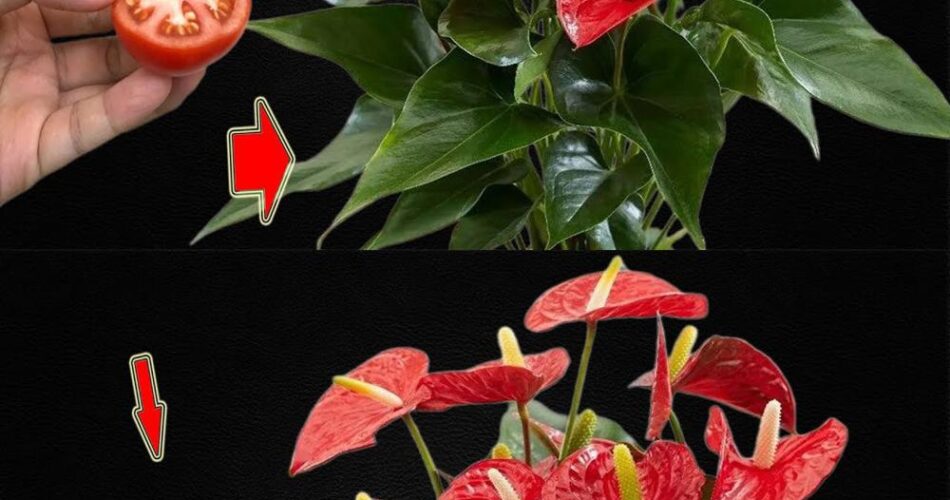 Tomatoes are rich in nutrients such as potassium and calcium, which are beneficial for plant growth and flowering. By placing a slice of tomato near your anthuriums, you provide them with additional nutrients that encourage their development and flowering.