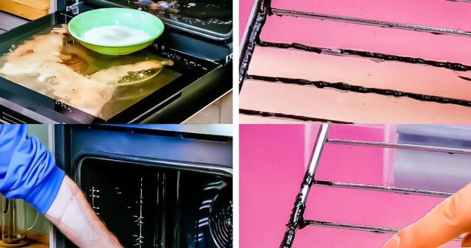 - Start by removing grills and plates from the oven for better access to the inside.