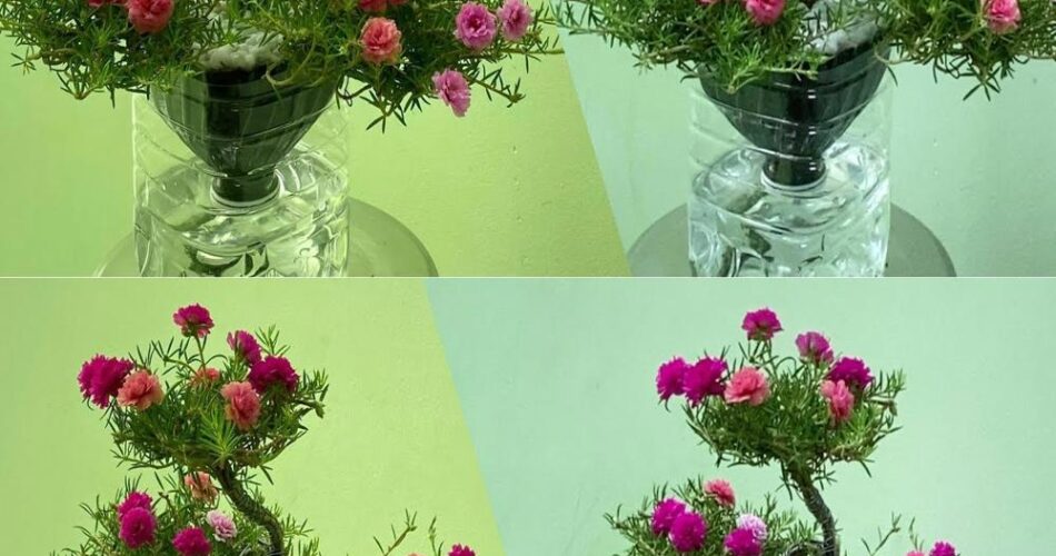 How to create beautiful flowered bonsai in ten hours without needing to water in a recycled plastic pot, simple and beautiful