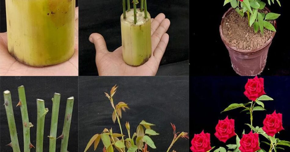 How to grow a rose plant from a cutting in a banana trunk