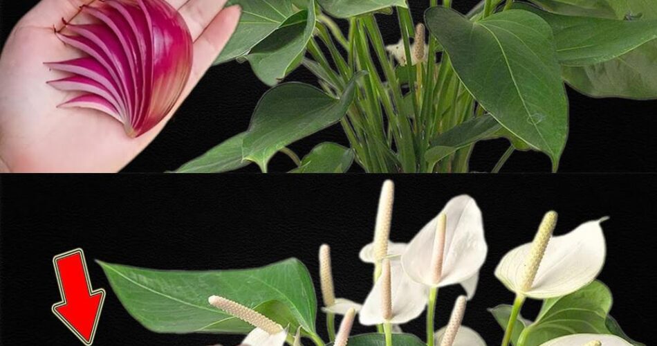 The Anthurium is a popular indoor plant thanks to its beautiful heart-shaped flowers that can last for weeks. To keep your anthurium healthy and see it bloom abundantly, a simple thing can make all the difference: a slice of onion.