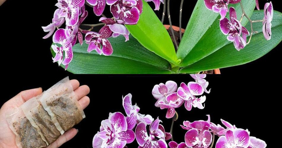 - Apply the fertilizer to the substrate of your orchids, making sure not to put it on the leaves.