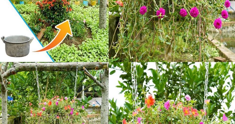 The hanging gardens are an elegant and innovative way to add greenery to your living space, whether inside or outside. They add an aesthetic touch and bring a feeling of calm and serenity. In this article, we will present a creative idea to transform broken kitchen utensils into adorable flower pots hanging for your garden.