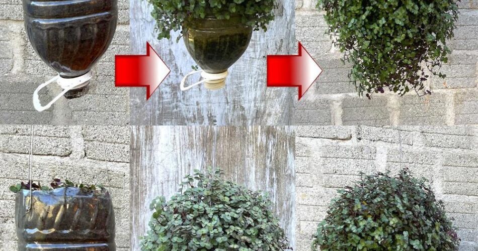 Turn plastic bottles into pots to grow Callasia repens tree